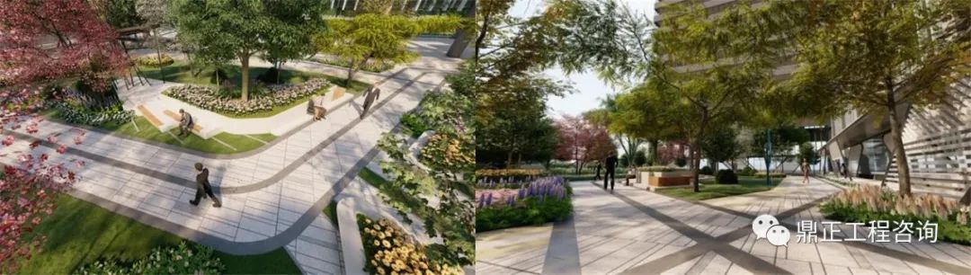 鼎正景觀設計內容:景觀園建及綠化工程,包括景觀廣場、步道、小品及園林植物設計,總設計面積近20000。