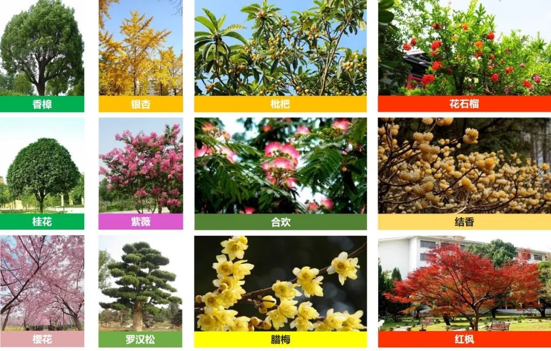 3)選擇樹形美觀,花色艷麗、景觀效果較好的樹種為開花小喬木及花灌木,如:櫻花、紫薇、花石榴、臘梅等。