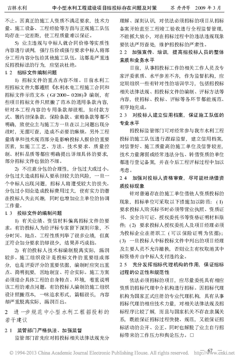 中小型水利工程建設項目招投標存在問題及對策
