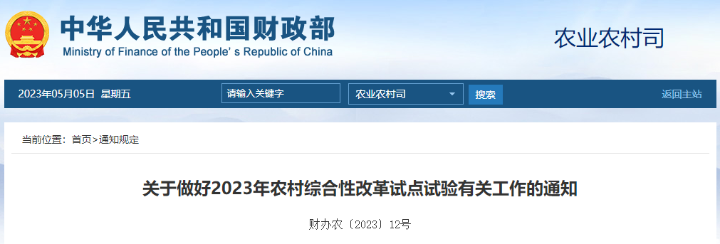 為深入貫徹黨的二十大精神,認真落實2023年中央一號文件“深化農(nóng)村改革”、“深入推進農(nóng)村綜合改革試點示范”的任務要求和中共中央、國務院印發(fā)的《數(shù)字中國建設整體布局規(guī)劃》部署,在總結前期試點經(jīng)驗的基礎上,2023年中央財政繼續(xù)支持實施并啟動新的農(nóng)村綜合性改革試點試驗(以下簡稱試點)。現(xiàn)就有關工作通知如下。