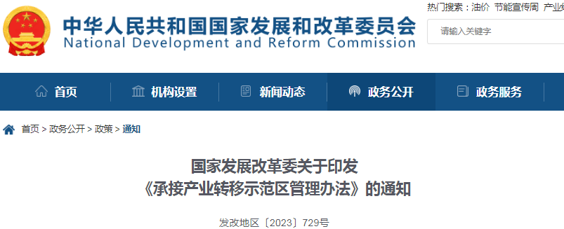7月10日,國家發改委發布《承接產業轉移示范區管理辦法》(以下簡稱《辦法》)的通知。