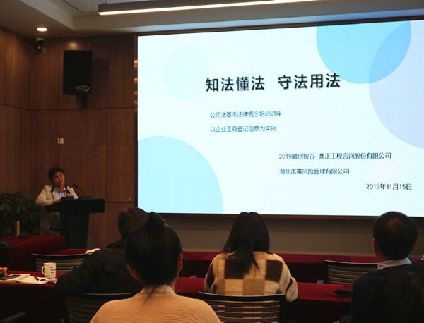 11月15日下午,我司組織開(kāi)展了2019 年公司法概論與風(fēng)險(xiǎn)防控知識(shí)培訓(xùn)。本次培訓(xùn)邀請(qǐng)湖北諾善風(fēng)險(xiǎn)管理有限公司王振宇律師、馮美淵律師就《公司法》實(shí)務(wù)知識(shí)進(jìn)行講解,公司董事長(zhǎng)王雁然、副總經(jīng)理毛迎霞、技術(shù)總監(jiān)朱立冬、副總經(jīng)理姚建功等領(lǐng)導(dǎo)及各部門(mén)中層管理人員、企業(yè)發(fā)展中心、行政中心全體成員參加了本次培訓(xùn),各分公司同事遠(yuǎn)程同步參與學(xué)習(xí)。