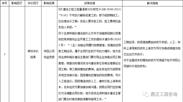 在控制最嚴的1-2月,全國大部分項目處于停工狀態,即便通過后期補救措施適當地趕工,但停工停業等行政命令在一定時期內造成工期的延誤是必然的,也將影響政府方對PPP項目建設期績效評價的評分。