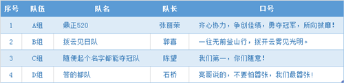 ▲各組霸氣的隊(duì)名和口號
