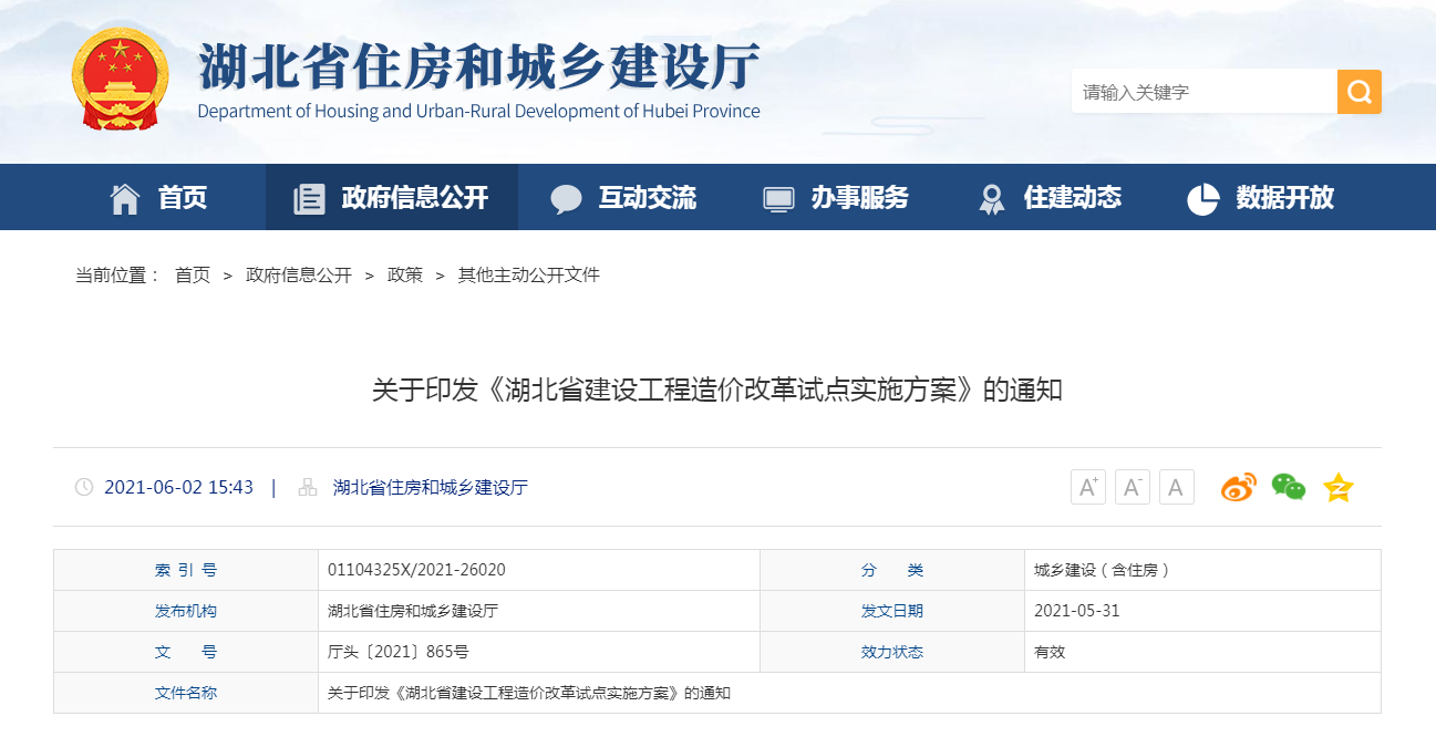 2020年7月24日,住房和城鄉建部辦公廳印發關于工程造價改革工作方案的通知(建辦標〔2020〕38號,以下簡稱38號文),通知決定在北京市、浙江省、湖北省、廣東省、廣西壯族自治區等五個地區開展方案試點工作。截至本稿起筆日(2021.6.3),廣西、浙江和湖北等三個試點地區相繼發布有關方案通知,北京、廣東尚未見官方相關信息。五個試點城市外,上海、河南等地的方案在征求意見中。