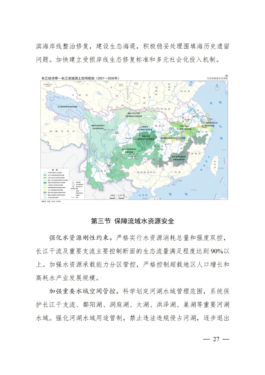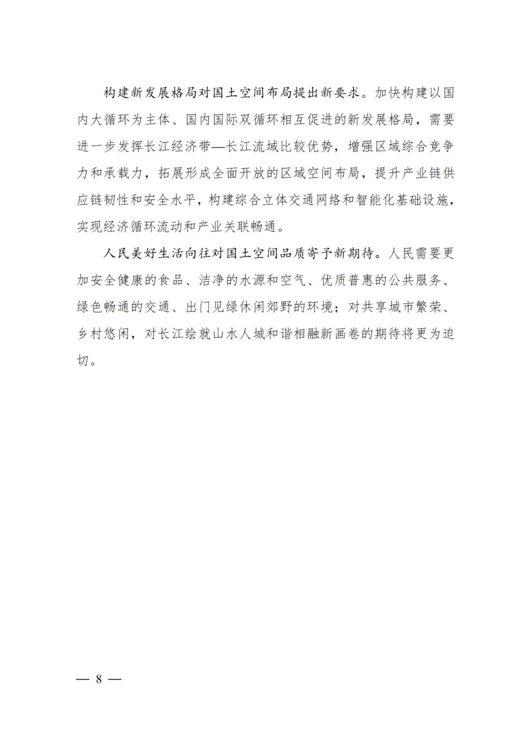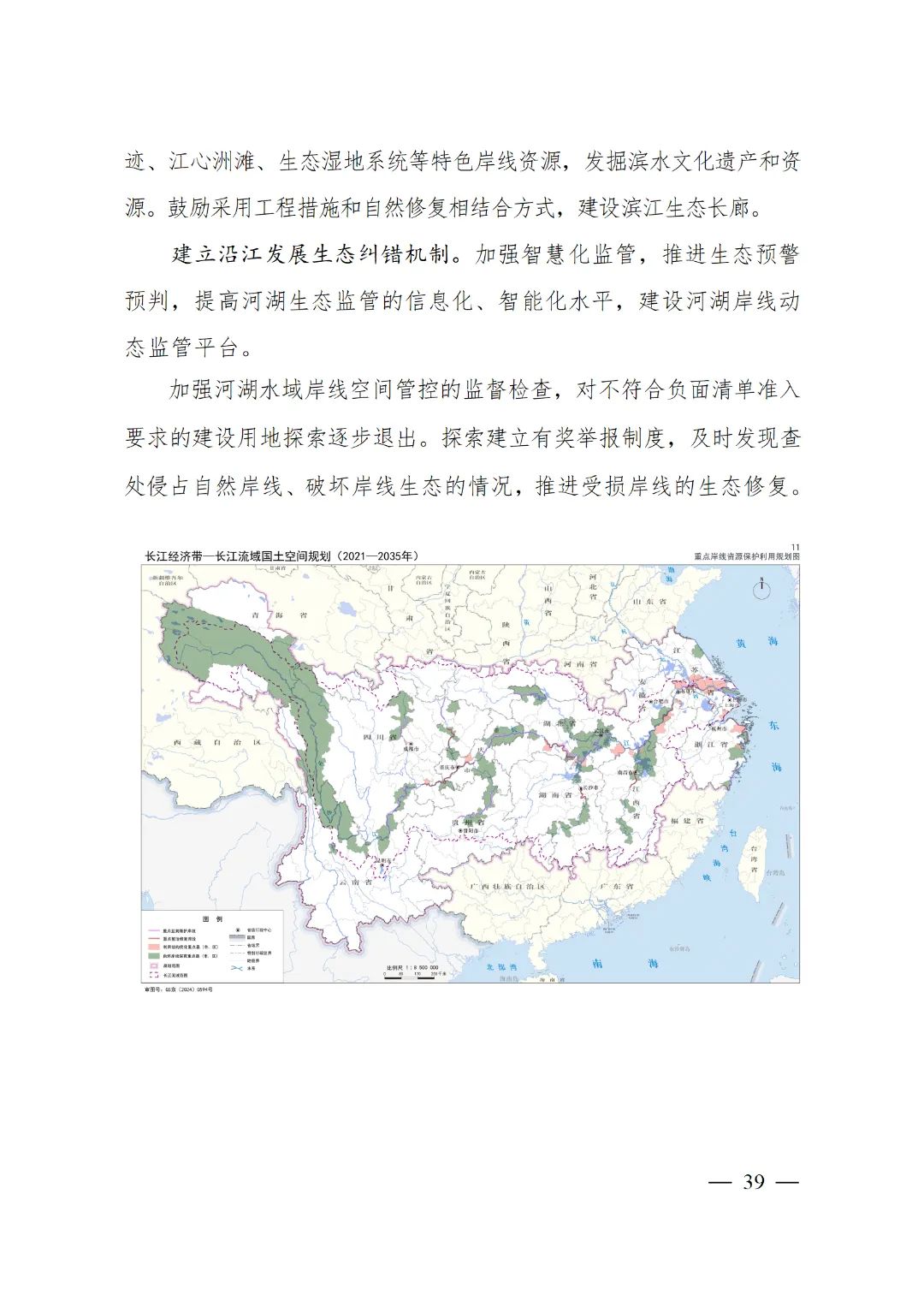 2024年2月9日,《長江經濟帶—長江流域國土空間規劃(2021—2035年)》經國務院批復同意。9月10日,自然資源部正式印發《長江經濟帶—長江流域國土空間規劃(2021—2035年)》。規劃范圍包括長江經濟帶11個省(市)全域,以及《長江保護法》規定的長江流域其他8?。▍^、市)的相關縣級行政區域,共計1173個縣級行政區域。規劃范圍包括陸域國土和內水、領海。其中,陸域面積240萬平方公里。(后附規劃范圍詳細表格)規劃期限為2021年至2035年。
