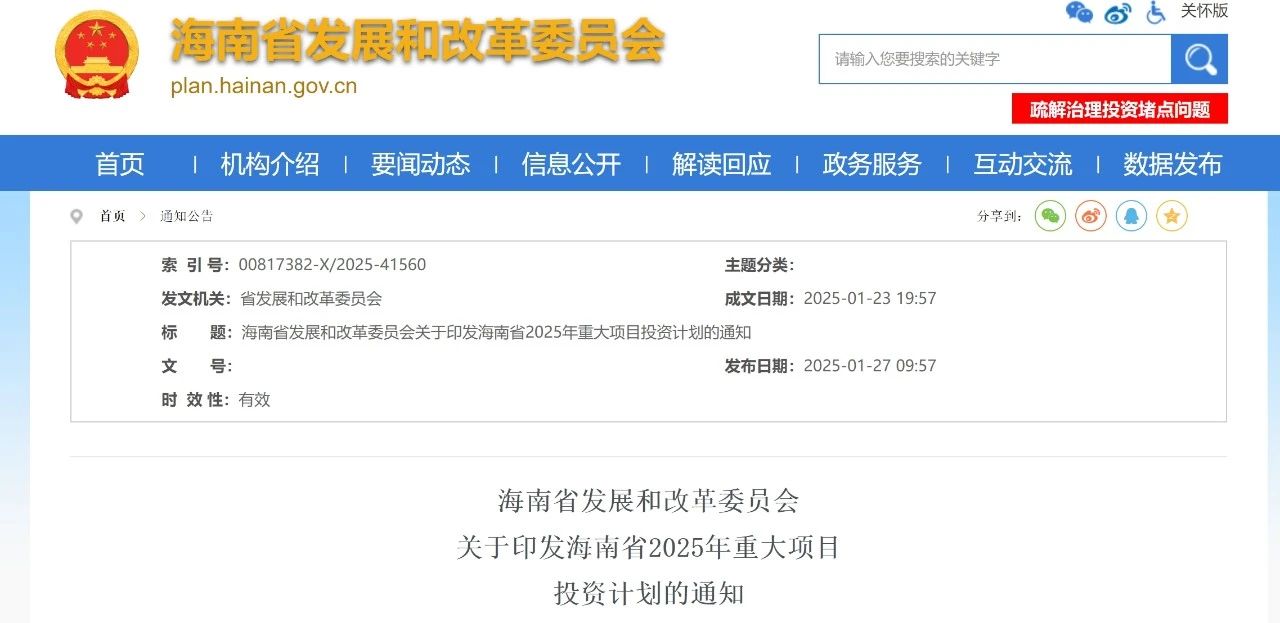 海南省發展改革委公布《海南省2025年重大項目投資計劃》。2025年安排省重大正式項目554個,總投資8540億元,年度計劃投資1647億元。其中,竣工項目121個、續建項目274個、新開工項目159個。此外,安排省級145個預備項目,總投資2485億元。