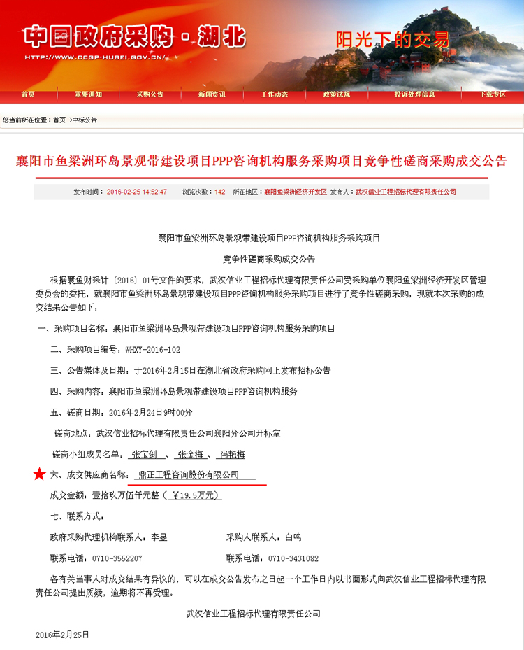 【經(jīng)營成果】我司中標襄陽市魚梁洲環(huán)島景觀帶建設(shè)項目PPP咨詢機構(gòu)服務(wù)采購項目